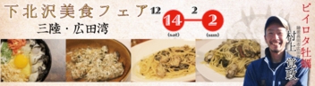| その他 : | ※小学生以下のお子さま ※ 合計200名限定参加 ※ 事前参加要 ※詳細はしもきた商店街ホームページをご覧下さい。 |