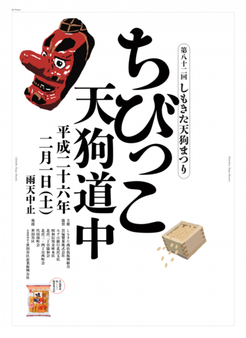 毎年、事前に申込をしたお子さまが天狗のお面をかぶりながら、総勢数百名のちびっこ天狗が下北沢北口エリアを「福は内!」と唱えながら練り歩きます。