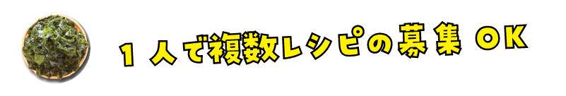 | 規 定 | ● 応募者が開発した作品(レシピ、レシピ写真、タイトル、各種コメントを含みます。)はオリジナルであること。 ● 他のレシピコンテストに応募していないもの、本、パッケージなどに公表されていないもの。 ● 応募に際しては 十分ご注意ください。 ● 使用する材料、使用量、作り方、盛り付け方を含めて、レシピから第三者が正しく再現できる ものであること ● 1人で複数の作品を応募できるが、作品ごとに応募用紙を分けて記述してあること ● 応募用紙に記載のルールや注意を全て満たしていること ●茎わかめ使用時には加点 + 5点 ●商品化に前向きに賛同、協力頂けること |
